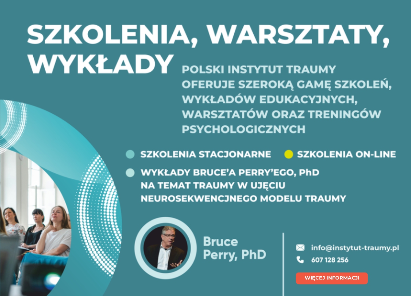 Polski Instytut Traumy to organizacja zajmująca się szerzeniem wiedzy dotyczącej traumy, zwłaszcza wczesnej traumy relacyjnej i traumy dziecięcej. Prowadzimy edukację dla specjalistów oraz rodziców w tym mało znanym w Polsce obszarze. Wczesne doświadczenia traumatyczne nie są obojętne dla dalszego rozwoju i mogą mieć wpływ na całe życie człowieka. Większość ludzi na świecie doświadcza traumatycznych zdarzeń, które mogą mieć wpływ na ich zdrowie i samopoczucie. Misją Instytutu jest szerzenie świadomości na temat symptomów stresu, zdarzeń szokowych i traumatycznych. Pragniemy, by dzięki tej wiedzy zmieniać świadomość społeczną oraz wspierać jednostki i społeczności w procesie zdrowienia.